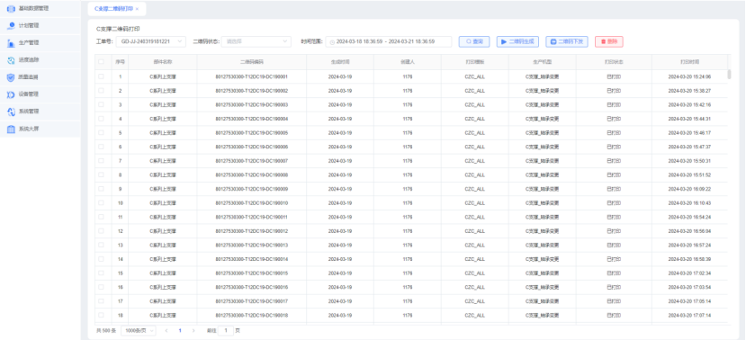 二维码管理以生产工单为对象,防止机型不匹配导致的物料混乱,确保组装正常进行。在二维码打印环节,实现刻码位置和大小的精准化,减少模板调用和刻码失误,进而降低生产成本,并显著减轻了工人的劳动强度。