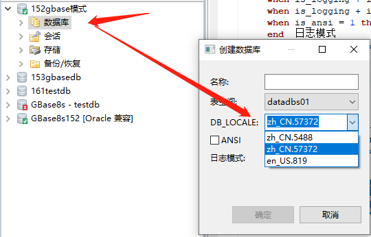 选中数据库,鼠标右键点击创建数据库,在DB_LOCALE中选择需要的数据库字符集,然后进行创建