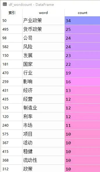 要分析这种影响,首先需要查找相关政策关键字在公告中的位置,然后读取关键字的上下文,再对这些文字进行分词、共词分析等处理、展现。
