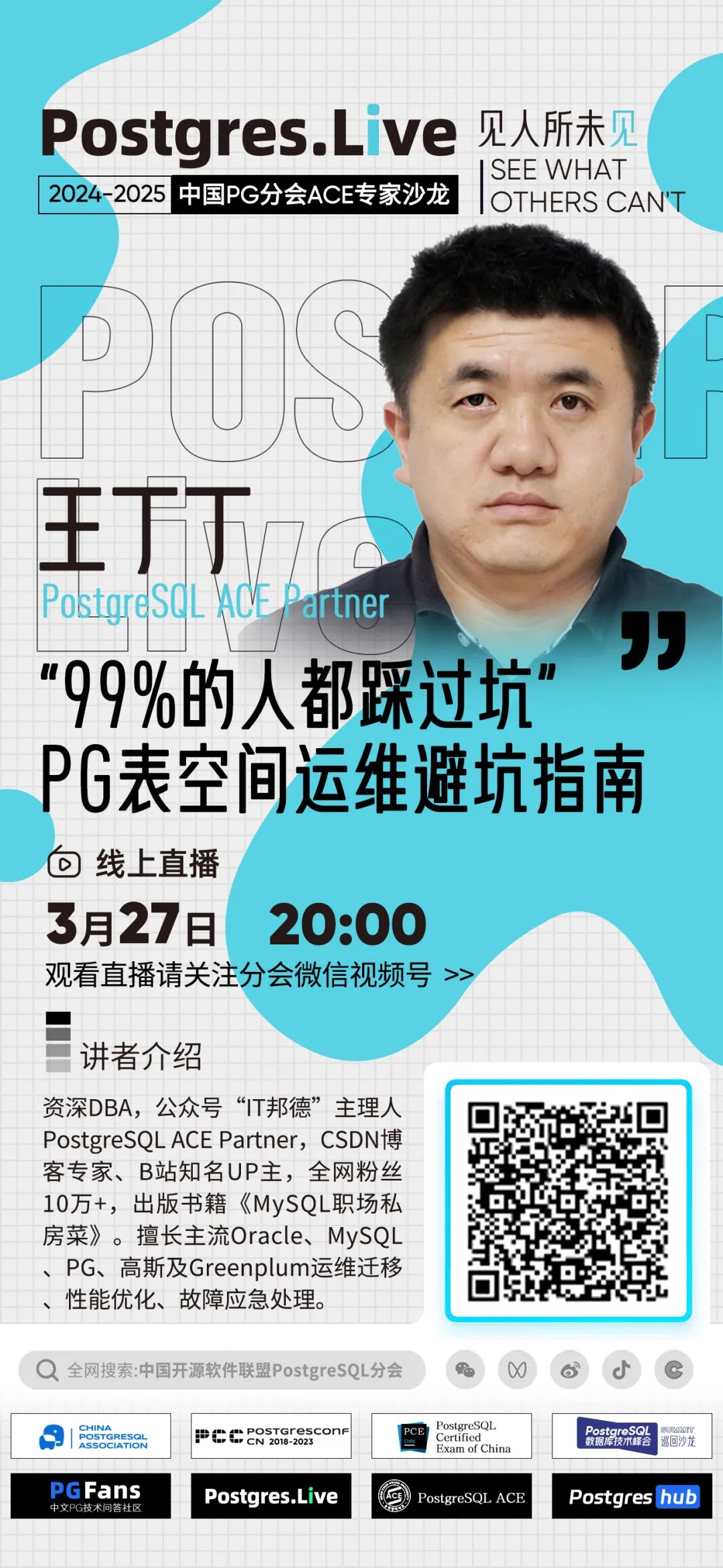 PostgreSQL中的表空间允许在文件系统中定义用来存放表示数据库对象的文件的位置,表空间可以有效的解决集群分区不足或者是卷空间不足的问题,最终提高PG数据库性能,本次直播带大家分析运维的要点。