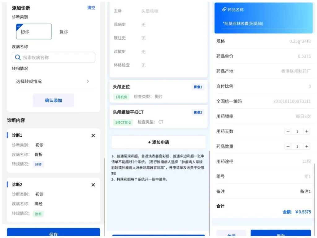 2.门诊医生通过“门诊应急就诊系统”,实现门诊病历书写、检验检查开具、医嘱录入等功能。