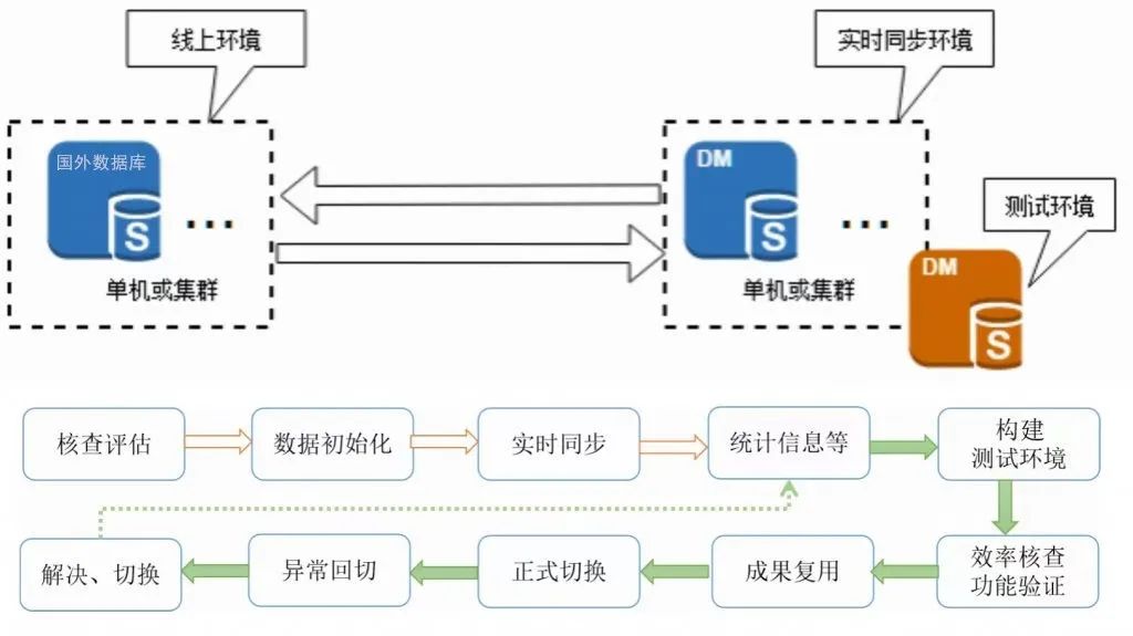 团队还须对系统进行核查评估,确定环境信息及数据同步与回流的闭环,对业务同步数据进行初始化并完成实时同步环境的搭建,同时还需构建测试环境核查适配后的功能验证,最后进行应用切换,将应用系统切换到基于信创环境的国产数据库上,进行成果复用。