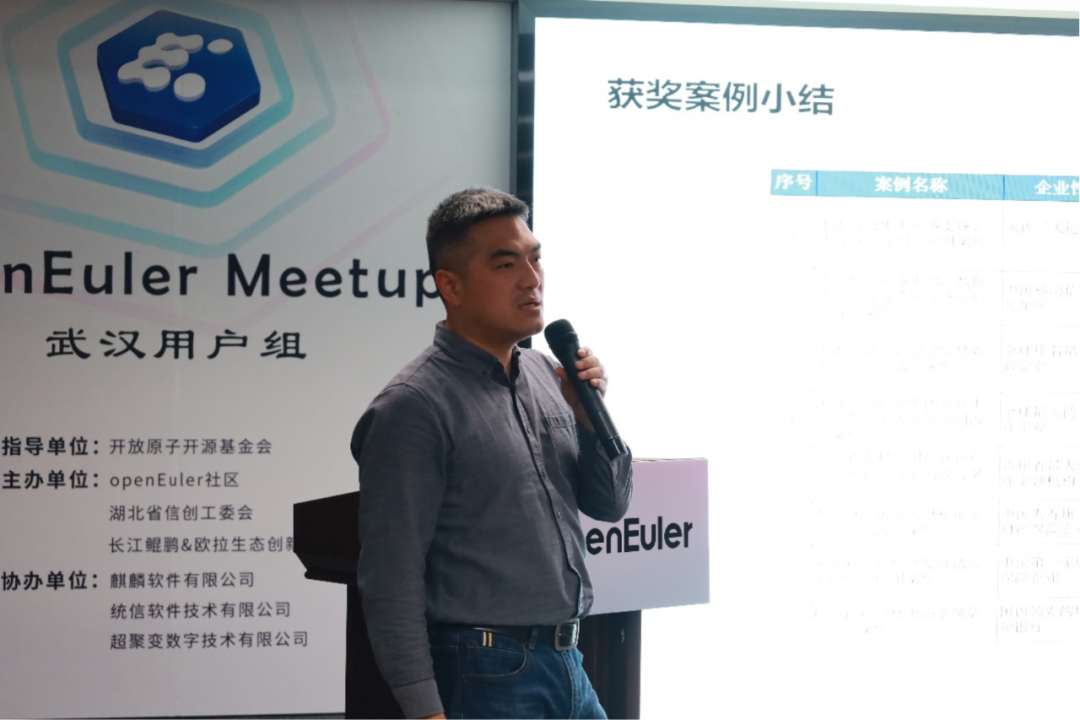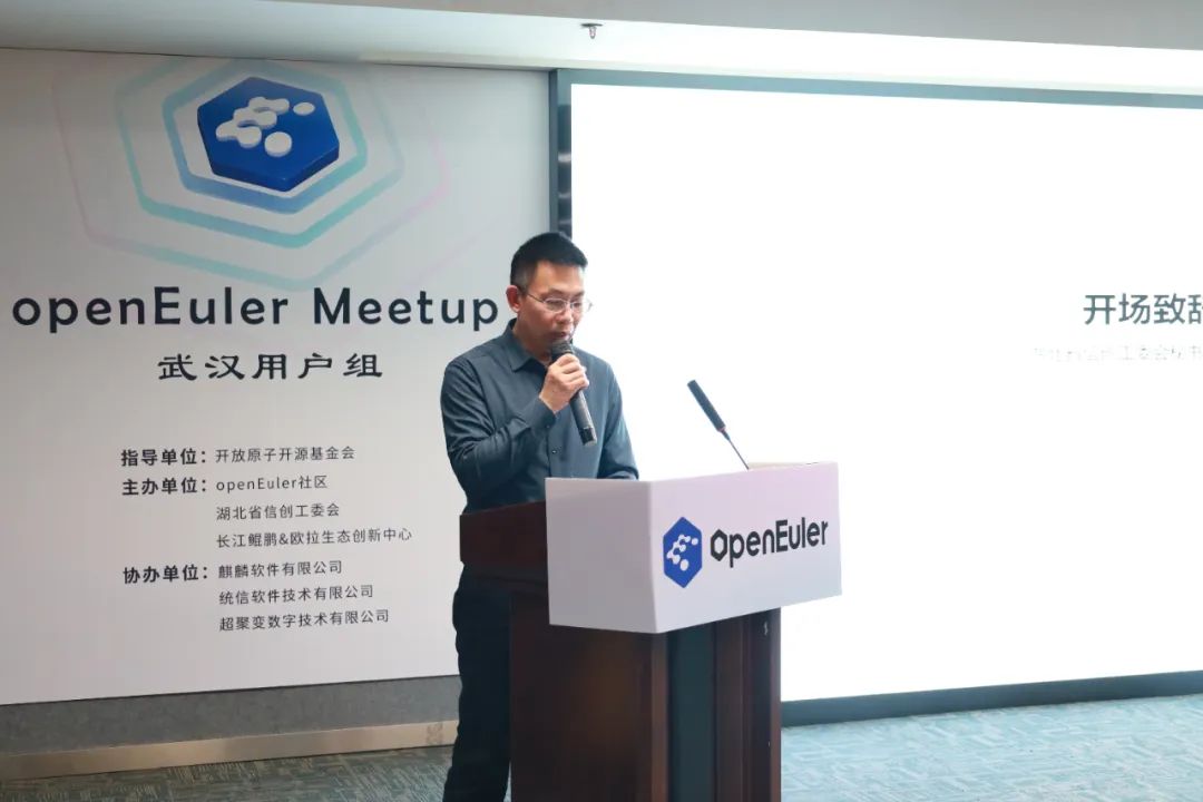 湖北省信创工委会秘书长温晖莅临活动并进行了开场致词,他表示《湖北省数字经济发展“十四五”规划》指出重点发展高可信服务器操作系统、中间件、办公软件等基础软件产品及解决方案,构建安全可控的信息技术体系,工委会将大力支持并推动openEuler在武汉地域的落地应用,助力武汉市优势产业转型升级。