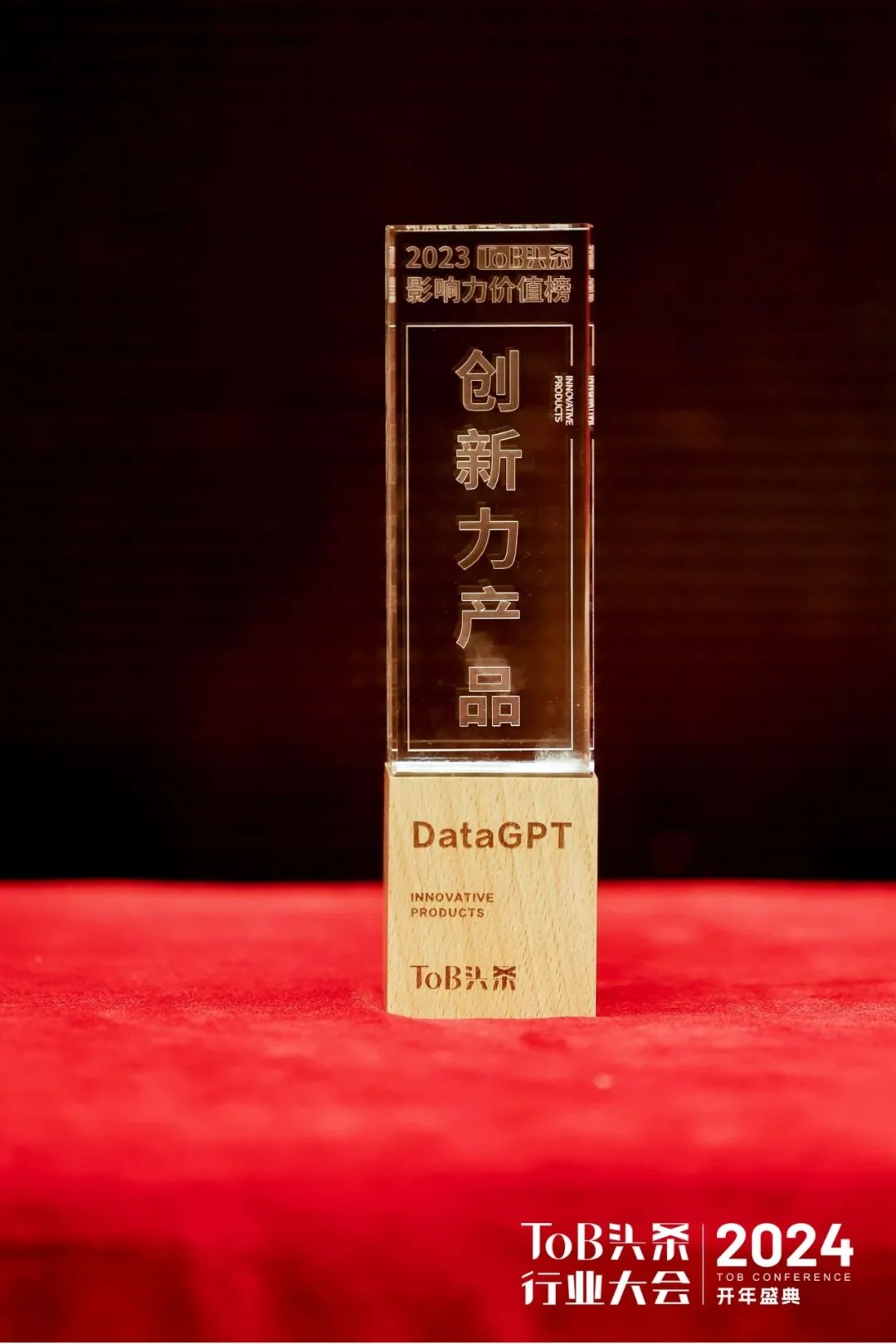 由甲方企业CIO高管、行业技术专家、50多家投资机构组成的评委组,从产品质量、技术应用、研发投入、用户规模、行业落地情况等诸多维度对国内百余项ToB产品进行综合评判,北极九章DataGPT成功入选榜单,获评“年度创新力产品”。