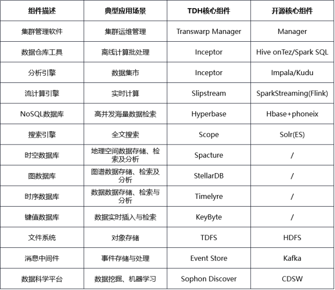 TDH在2020年5月就实现多模型数据的统一处理技术,支持同一平台一站式处理多种不同的数据模型。在TDH多模型的统一架构下,实现系统架构的四层统一。