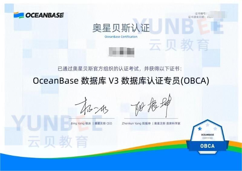 OceanBase 认证是 OceanBase 官方推出的唯一人才能力认证体系,代表了阿里巴巴及蚂蚁集团官方对考生关于 OceanBase 技术能力的认可,旨在帮助考生更好地学习 OceanBase 数据库产品,早日融入 OceanBase 技术生态体系,通过由浅入深的学习,一步步成长为 OceanBase 数据库专家。OBCA 认证与培训覆盖了 OceanBase 的发展历程、应用案例、产品架构、核心功能、部署安装等知识。帮助您理解多副本一致性协议、数据可靠及高可用、在线水平扩展、分布式事务等 OceanBase 的重要特性。