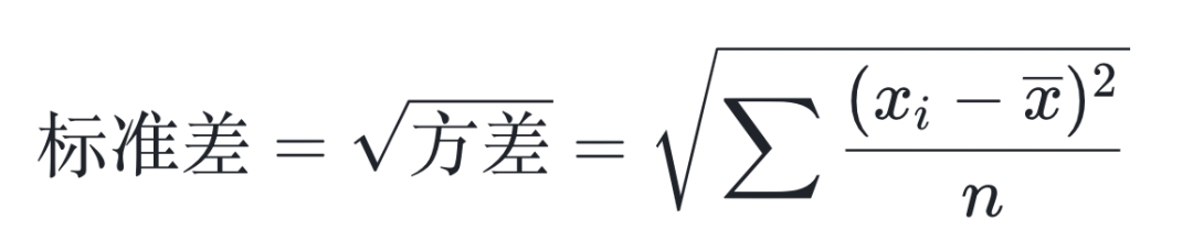 统计学中,指标的数据分布通常满足正态分布。正态分布具有对称性,会用到均值、标准差两个数据。其中均值可以反应数据的平均水平,标准差可以反应数据波动幅度,标准差越大, 反映出数据波动性越大。标准差的计算公式如下: