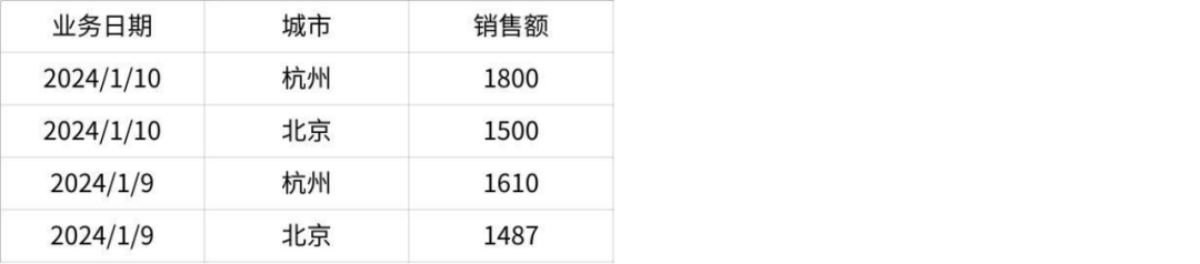 某产品线1月1日和1月2日销售额分别为3097万元、3300万元。细分到城市维度,每个城市两天的数据表现如下: