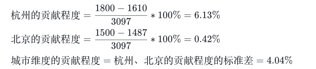 单一维度下,每个维度值贡献程度可通过下列公式计算: