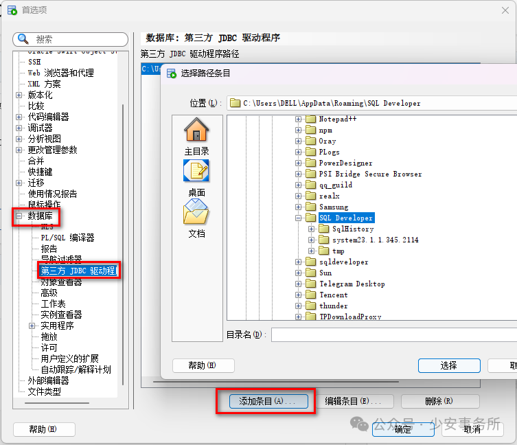 在菜單欄【工具】-》【首選項】-》【數據庫】-》【第三方 JDBC 驅動程式】,