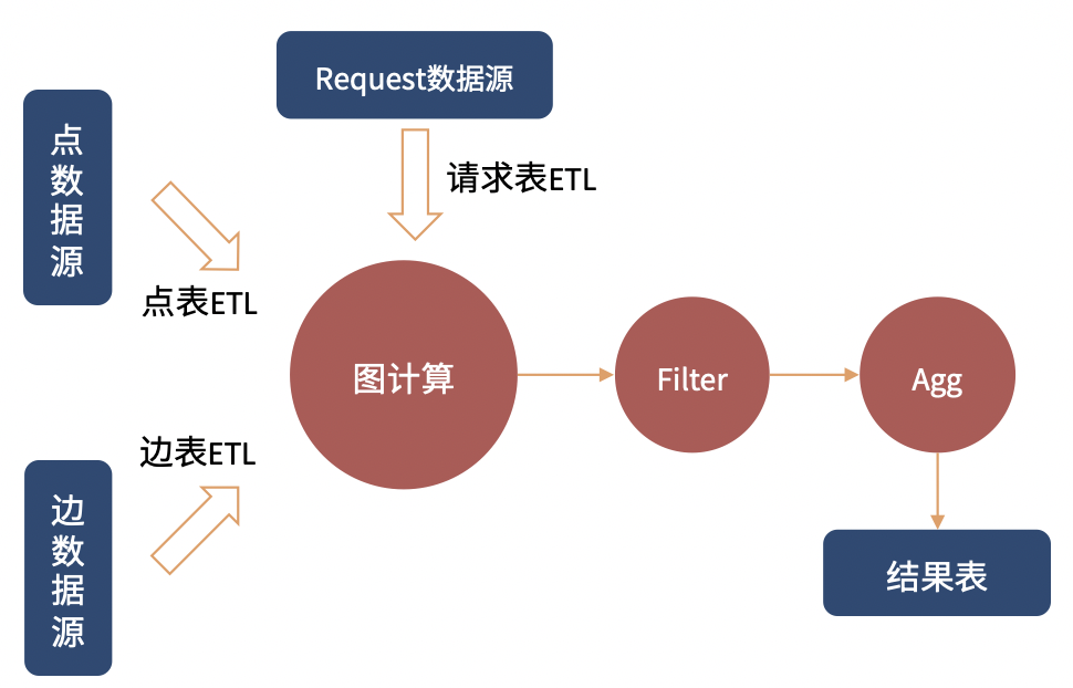 通过以上的语法设计,可以满足多样化的图表融合处理的诉求。点边数据源提供构图数据,Request数据源提供图计算触发的起点集合。