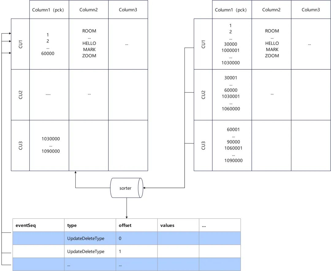 写入数据时,如果不是批量导入,则不会把数据写入排序器,而是直接插入delta表,当delta表merge的时候,也不会先走排序逻辑,而是直接将数据写入CU;