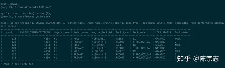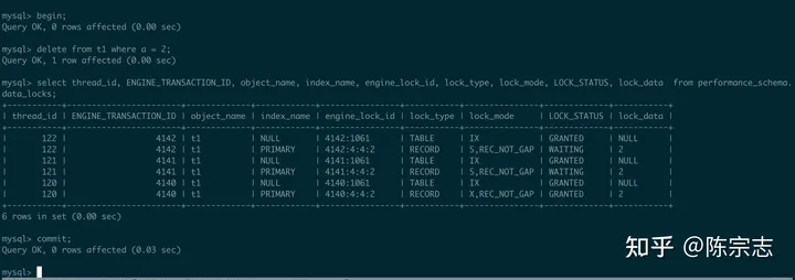 不过这样发现和上面例子不一样的地方, 这里的record 都lock 在record 2 上, 而不是record 3, 这是为什么?