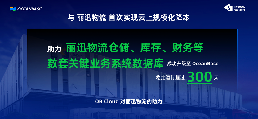 在迁移到云端的过程中,丽迅物流(Lesoon Logistics)考察了国内多款分布式数据库,最终根据实际业务需求和验证选择了OceanBase的云数据库版本,用于升级丽迅物流的多个关键业务系统。目前,丽迅物流的仓储、库存、财务等多套关键业务系统均已成功迁移到OB Cloud平台,整体数据库成本降低了50%,并且在过去一年里保持了稳定运行。下文为演讲实录整理。