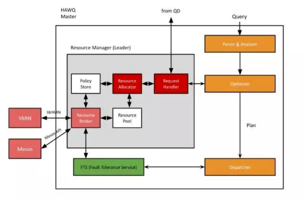 事务是数据管理系统一个非常重要的属性。大部分Hadoop里面的SQL引擎不支持事务。让程序员自己保证事务和数据的一致性是非常困难的事。 OushuDB支持事务的所有ACID属性,支持Snapshot Isolation。事务发生由Master节点协调和控制。采用的是泳道模型。并发插入时每个并发会使用各自的泳道,互不冲突。在事务提交的时候通过记录文件逻辑长度的方式来保证一致性。如果事务失败的时候,需要回滚,删除文件末尾的垃圾数据。起初HDFS是不支持truncate的,现在HDFS刚支持的truncate功能是根据OushuDB的需求做出的。2、资源管理器