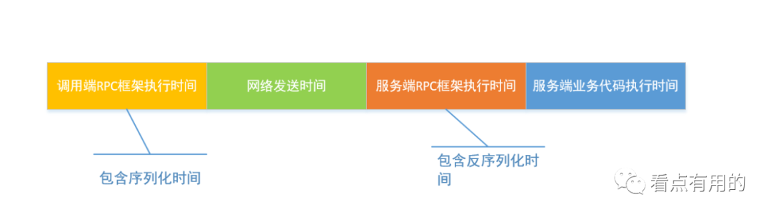 c. 服务端主要是队列等待时间,包括请求拦截+反序列化、响应的序列化。同时如果RPC框架使用了队列则有可能有一定的等待时间。