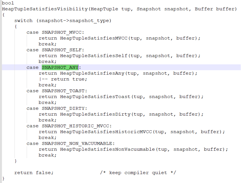 usr_ctx->scan = heap_beginscan(usr_ctx->rel, SnapshotAny,...);//使用SnapshotAny