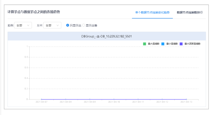 7.在计算节点与数据节点之间的连接趋势中,单击单个数据节点连接变化趋势页签。