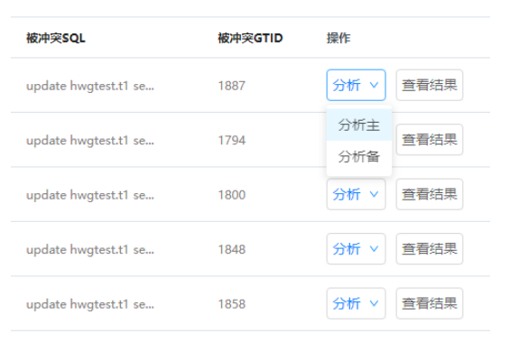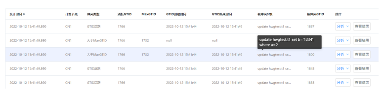 1.选择菜单[统计监控→监控→GTID统计],进入GTID统计界面。