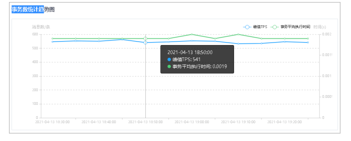 3.在事务数统计趋势图中,鼠标悬停在图上的数据点,可查看该点的详细数据信息。