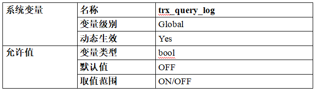 说明:单个会话可以保留事务级日志缓存的大小阈值,调整的最小步长:1024。超过缓存限制大小将不记录后续的SQL信息,并将没有记录的结果写入到事务级日志中。