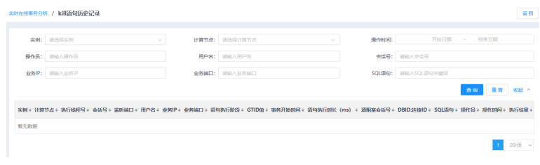 3.选择实例、相应计算节点,单击查询按钮,查询SQL统计。