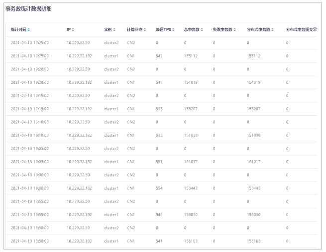● 事务数统计数据明细通过表格详细展示了事务数统计数据。