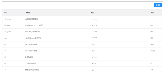2.单击编辑按钮,各个模块巡检项的阈值参数进入编辑模式。