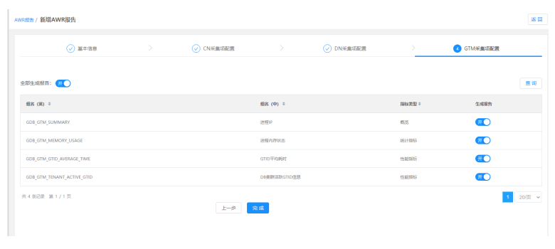 注意:此项统计需要保证对应开关打开,可以手动进行配置,需要在对应GTM节点的家目录下,在etc/gtm.ini中配置“ReportSwitch=1”,动态生效(执行“dbtool -gtm -lc”)。