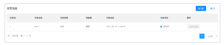 新增巡检任务,包括定时巡检任务和实时巡检任务;查看巡检任务执行结果。
