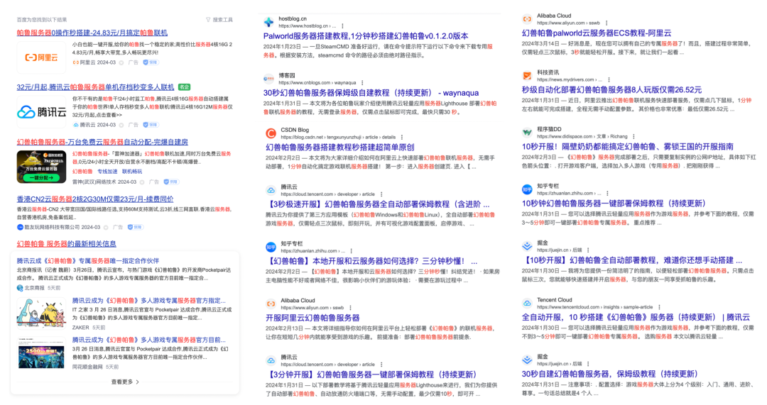 把云服务器卖给个人用户这种荒诞想法,可能源于最近爆火的《幻兽帕鲁》自建私服需求。我的朋友 SealOS 创始人方海涛写了一篇《自建幻兽帕鲁私服的教程》,尝到了泼天富贵 SaaS 的美味。紧接着各家公有云厂商也快速跟进卷了起来 —— 一路从3分钟开服到30秒到3秒钟开服。正如 《国内云:有大厂,没大哥》一文形容的那样,丝毫不顾颜面,撸起袖子下场,“大哥”干起了浩方对战平台应该干的事情。