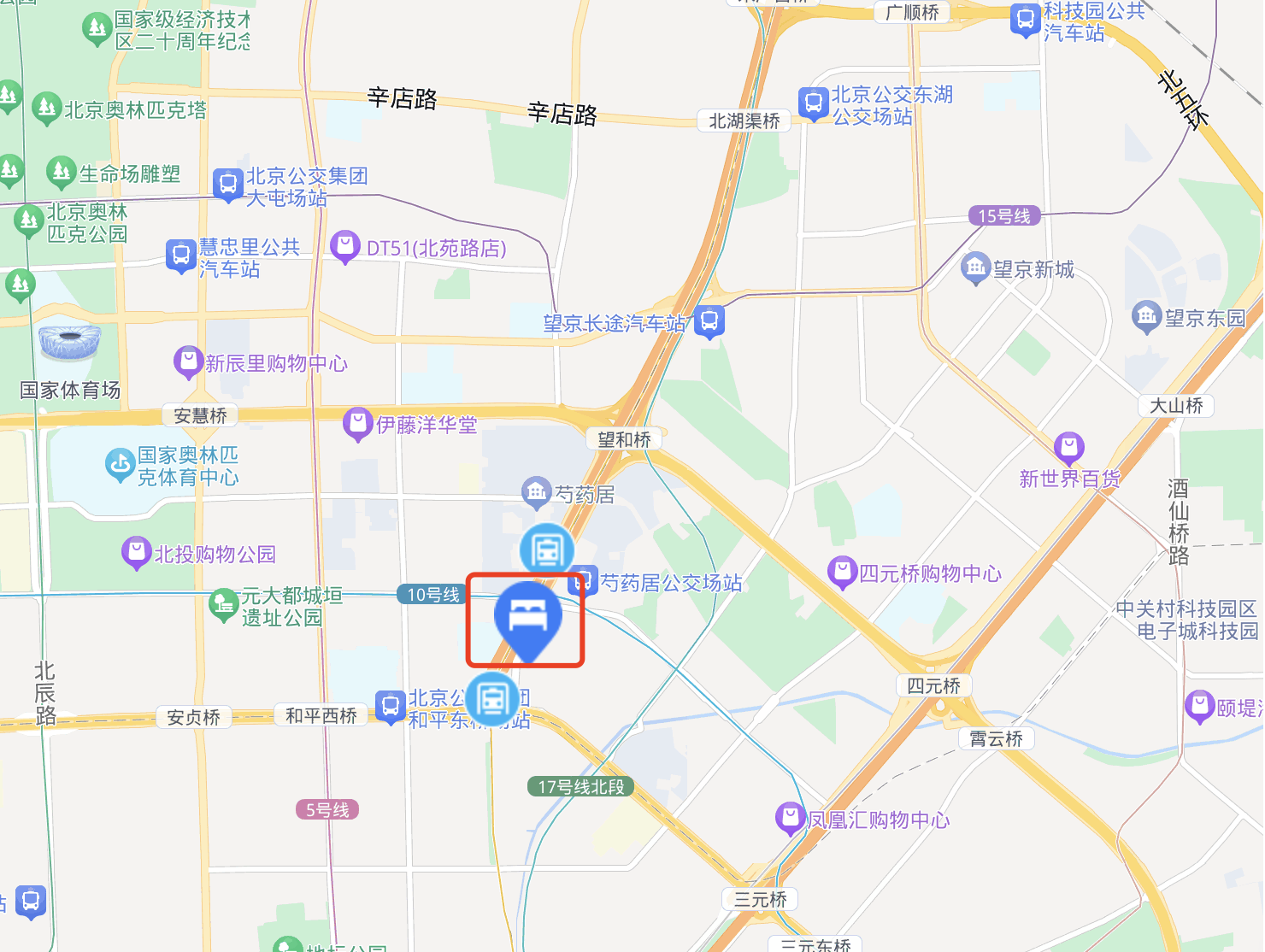 公交车可乘坐:596,419,379,运通104,942路快,980路快,984路快,984路,在太阳宫桥站下车后步行400米,即可到达。