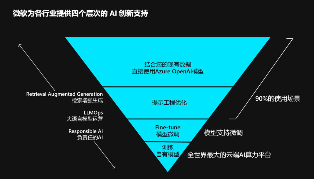 微软为各行业客户 根据 AI 战略阶段不同提供四个层次的 AI 创新支持: