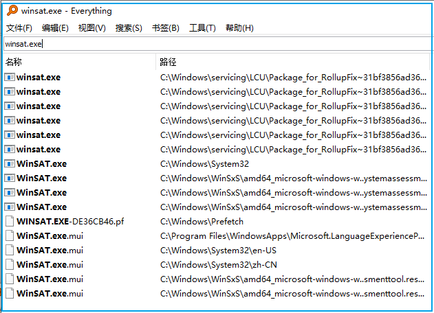 这是需要通过 Everything 工具定位 winsat 命令的位置,有可能在: