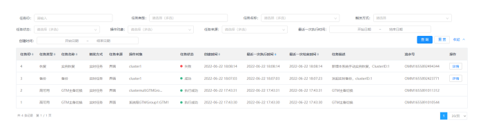 任务管理界面可查看已创建的任务执行情况,可查看的任务包括: