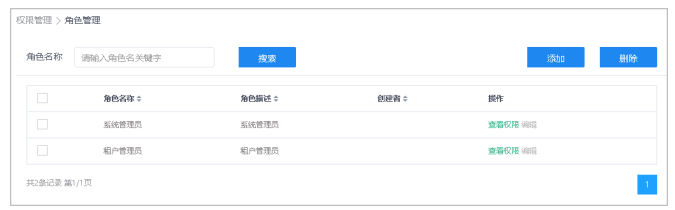 1.选择菜单[权限管理→角色管理],进入角色管理界面。