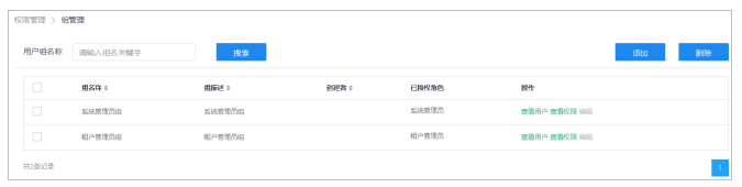 1.选择菜单[权限管理→组管理],进入组管理界面。