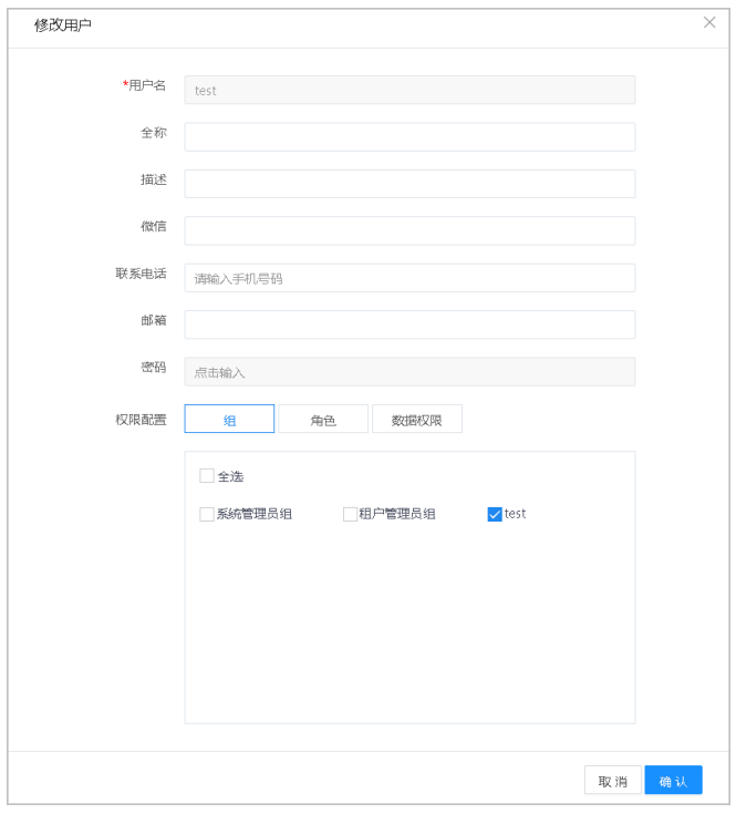 系统默认角色(系统管理员和租户管理员)的角色信息不可编辑。