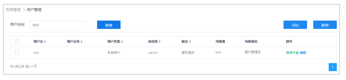 2.在搜索框填写用户名称(支持模糊搜索),单击搜索按钮。