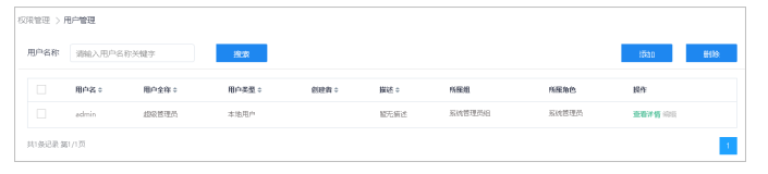 1.选择菜单[权限管理→用户管理],进入用户管理界面。