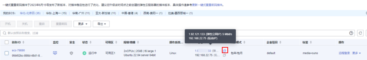 步骤 5 登录弹性云服务器控制台,获取步骤四创建的弹性服务器公网 IP。在浏览器访问:http://弹性公网 IP:80,即可访问 Suno 音乐下载站。
