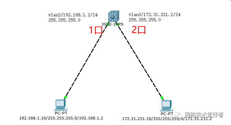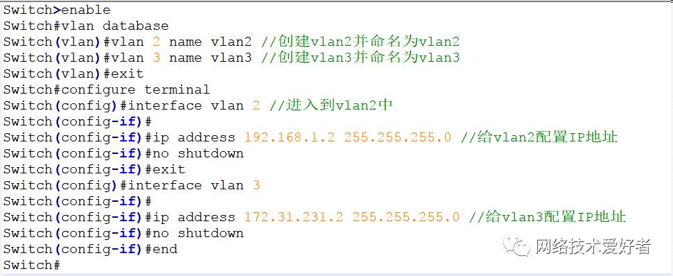 分别给三层交换机划分2个vlan 如;vlan2和vlan3 ;