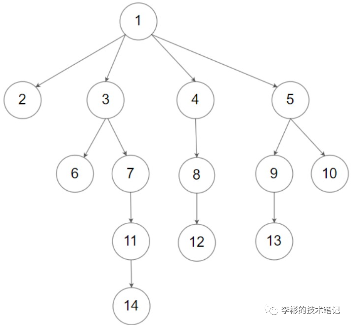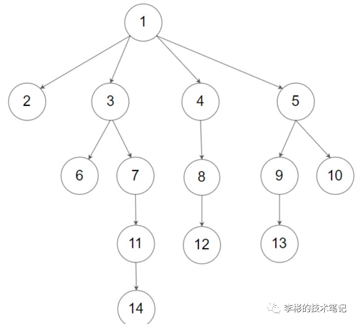 输入:root = [1,null,2,3,4,5,null,null,6,7,null,8,null,9,10,null,null,11,null,12,null,13,null,null,14]