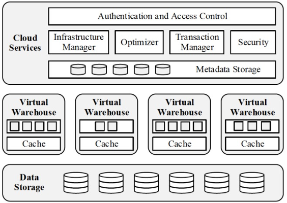 - 数据共享(Multi Cluster, Shared Data),计算资源可以根据不同的业务进行划分后构成虚拟数仓,虚拟数仓共享底层的数据,可以通过MVCC机制来实现数据访问的一致性。