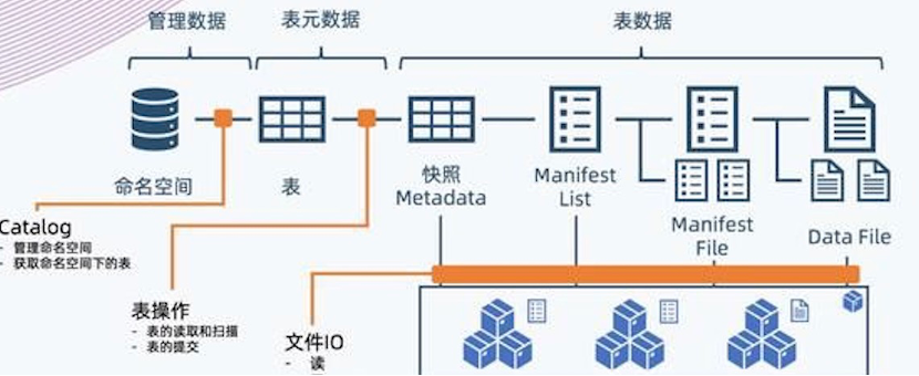 数据湖存储格式是湖仓运行的核心,其通过良好的抽象对接数据存储和元数据管理,格式如下图所示:
