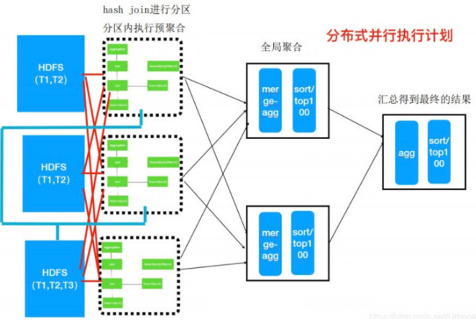分布式并行执行计划是在单机执行计划的基础上,结合数据分布式存储的特点,将其拆分为多个子任务,每个子任务都是可以并行执行,待执行后将结果进行全局的聚合。