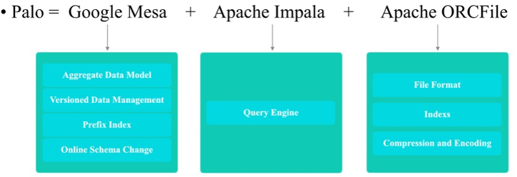 这里以Doris为例,其在整体上整合Google Mesa存储模型、Impala MPP查询引擎和ORC file存储格式(在格式的基础上进行优化)等先进技术。