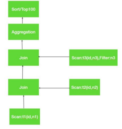 查询请求提交到集群后由FE进行解析并生成查询计划,在这个过程中会将执行计划转换成分布式并行物理执行计划,如下图所示: