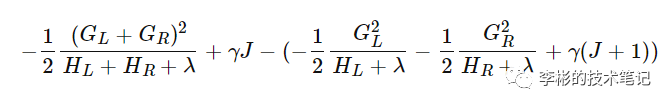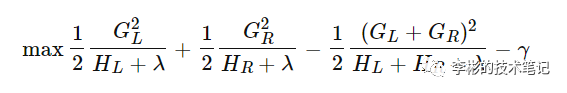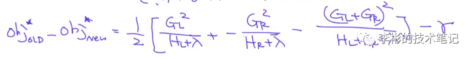 在节点向下分裂的过程中,我们希望第二步目标函数变得越来越小,故实际上我们期望最大化的是第一步的目标函数减去第二步的目标函数:(这里请重点理解!):