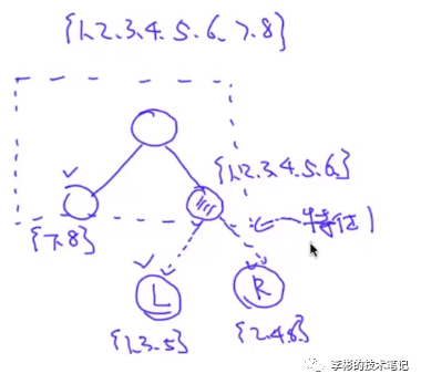 第一次分裂,左子树两个样本点{7,8},右子树有六个样本点{1,2,3,4,5,6},此时的目标函数为: